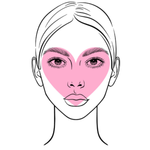 O rosto no formato de coração é caracterizado pelas testas largas com queixo estreito e maçãs do rosto mais altas, o qual combina com vários modelos de óculos, principalmente os retangulares e ovais menores. Outro modelos que combina com o rosto de coração são os óculos de meio aro ou três peças, também redondos.